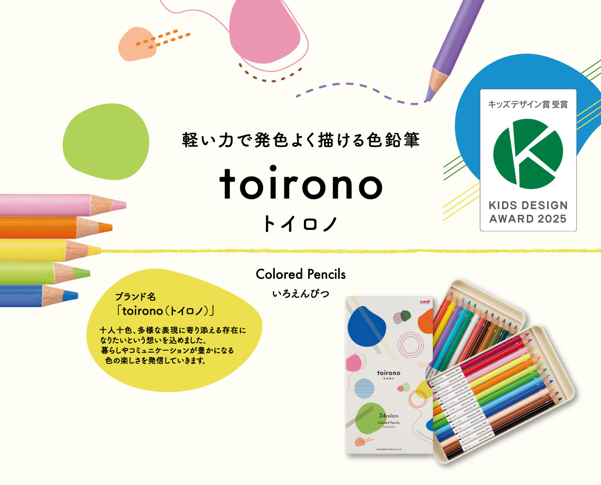 toirono(トイロノ)は、小さなお子さまから大人の趣味まで幅広くお使いいただける発色の良い色鉛筆です。